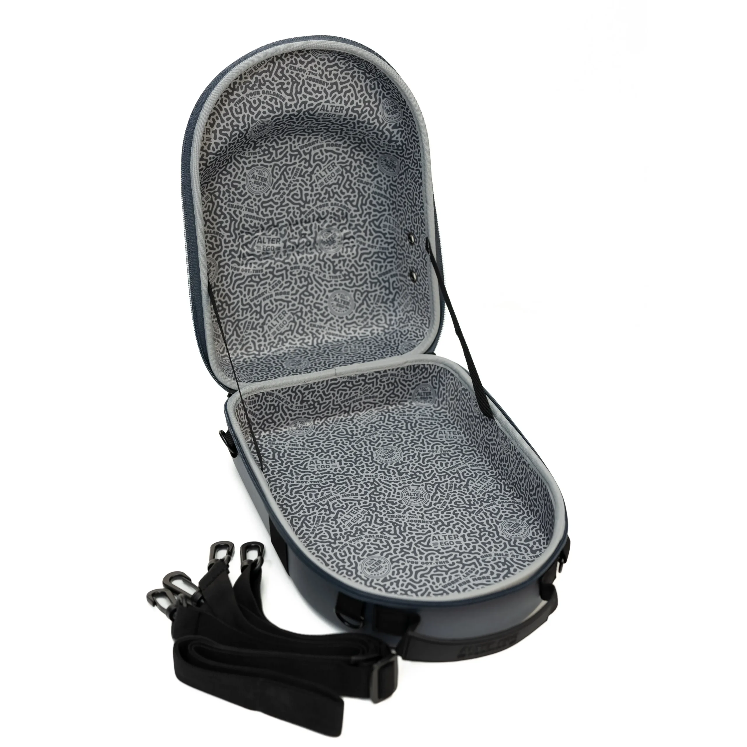 The Alter Ego Hat Travel Case Crafted for the modern athlete and built for life on the move, this sleek, protective case keeps your Alter Ego hats in peak condition—whether you’re headed to the gym, the trail, or a weekend away. Debossed handle logo adds a refined, premium touch Signature mantra lining blends motivatio