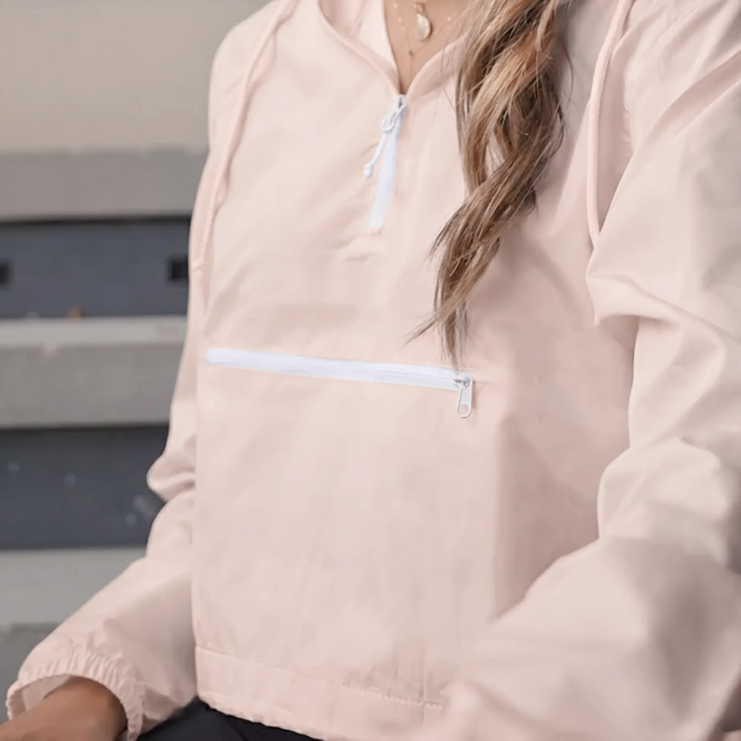 Women’s Lightweight Crop Windbreaker Performance made effortless. Lightweight, water-resistant, and built for movement, this cropped windbreaker brings technical function to a modern silhouette. The soft polyester shell keeps wind and light rain out, while the breathable mesh-lined hood and adjustable hem deliver comfo